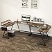 SHW Vista L Desk with Monitor Stand Drawer, Rustic Brown