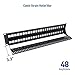 Cable management bar with sequential port labels integrated into the panel provides easy identification of multiple types of cables; 48 C-shaped keyholes on the bar accommodate zip ties for securing cables on the keystone jack patch panel
