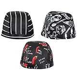 3 Pcs Pack Chef Hats, Professional Head Scarf for Men and Women, Adjustable Kitchen Cooking Cap, Bandana Scarves & Turban Covers for Cooking Fit All Adults Black