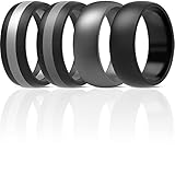 ThunderFit Mens Silicone Rings Wedding Bands, Classic & Striped Style 8.7 mm Wide 2.5mm Thick (Pack N, Size 9.5-10)