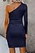 PRETTYGARDEN Women's Fall Fashion One Shoulder Long Sleeve Bodycon Dresses Ruched Irregular Hem Mini Dress (Long Sleeve Navy,Small)