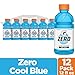 Gatorade Zero Thirst Quencher Sports Drink, Cool Blue, 12oz Bottles (12 Pack), Zero Sugar, Electrolytes for Rehydration