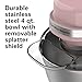 - DURABLE STAINLESS STEEL BOWL WITH REMOVABLE SPLATTER SHIELD: The stainless steel bowl is designed to withstand year after year of mixing and includes a removable splatter shield that fits on top when needed. Dishwasher safe for easy cleanup.