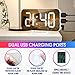 WulaWindy RGB Alarm Clock - Digital LED Clocks Mirror Surface with Dual USB Ports for Makeup Best Modern Decorations Aesthetic Home Bedroom Living Room Office and Wall Decor - White