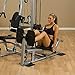 SIX STATIONS: This fitness equipment provides six workout stations, including multi-press arms, lat pull-down ab crunch, functional pulleys, leg extension/leg curl and seated row