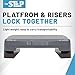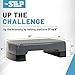 Shock absorbing, non-slip stair stepper platform supports over 330 lbs. with compact dimensions of 18" L x 11" W and height adjustability from 3" to 5"