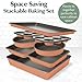 - STACKABLE, SPACE SAVING DESIGN: All eight bakeware pieces were designed to completely nest into one another for compact storage and a clutter-free cabinet. The end result…a complete bakeware collection within a 17.5 x 12.5 x 3.5 inch footprint.