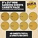 - It includes a 40-sheet grit variety pack of sanding block-sized Dura-Gold 5" x 2-3/4" gold sandpaper sheets with a hook & loop backing. 5 Sheets each of 8 different sanding grits: 60, 80,120,180, 220, 320, 400, and 600. Superior quality sanding sheets made with super-coated aluminum oxide corundum fused with zirconia alumina. These coarse-cut to fine-cut sandpaper sheets are ideal for aggressive sanding to extra-fine-finish sanding on all types of surfaces.