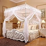 4Corners Post Canopy Bed Curtain Mosquito Mesh Net, 360° All-inslusive Princess Mosquito Nets Thicken Foldable Breathable Bed Canopy for Girls,White,1.35 * 2.0m