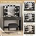 - The size of this dressing table set is 33.5"(L)x15.7"(W)x51.6"(H), it has a spacious tabletop and 2 large drawers that provide the perfect space to store and organize your precious lipsticks, eye shadows, makeup, perfumes, jewelry, other beauty supplies, and more in different places. And comes with a cushioned stool. Wonderful gifts for yourself, your wife, your mom, your girls.