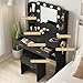 Vanity Desk with Lights,Makeup Vanity with Power Strip,Dressing Table Set with 2 Large Drawers,Vanity Mirror 3 Lighting Color Adjustable,Black