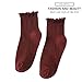 UTTPLL Ruffle Crew Socks Women Turn-Cuff Athletic Aesthetic Lettuce Socks Ladies Thin Lovely Cotton Frilly Boot Ankle Socks Wine Red One Size