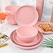 Supernal Pink Wheat Straw Dinnerware Sets,Unbreakable Dishes for 8, Plate and Bowls Sets, Reusable Plates, Microwave Dishwasher Safe Plates,Plastic Dinnerware Set, Pink Plastic Tableware