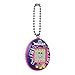 A purple shell with neon lights and 'Tamagotchi', dark pink frame, green buttons, and original programming and characters