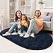 LOCHAS Fluffy Navy Bedroom Rug 2.6' x 5.3', Shaggy Area Rug for Bedroom Bedside, Soft Oval Throw Rugs Carpet for Living Room Kids Girls Home Decor