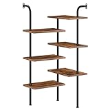 HOOBRO L-Shaped Ladder Shelf, 6-Tier Corner Bookshelf, Corner Wall Mount Bookcase, Display Shelf for Small Spaces, Anti-Tip Design, for Living Room, Balcony, Study, Rustic Brown and Black BF76CJ01
