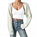 Fuimsul Women Open Front Ribbed Knit Crop Bolero Drop Shoulder Long Sleeve Solid Loose Fit Knitted Crop Cardigan Shrug White