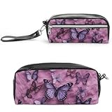 GHEPSDW All Butterflies Are on Purple Background Pencil Case With Lanyard Makeup Bag With Zipper Waterproof Pencil Pouch For Office Supplies Travel Makeup Bag
