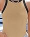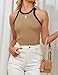 ZESICA Womens 2024 Summer Sleeveless Tank Tops Ribbed High Neck Racerback Slim Fitted Color Block Casual Shirts,Toffee,Small