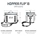The Hopper Flip 18 dimensions are 15 2/3 in long x 10 1/5 in wide x 12 3/5 in high and an empty weight of 5.1 lbs.