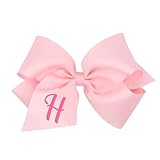 Wee Ones Girls' Initial It Monogram Hair Bows on a WeeStay No Slip Hair Clip, For All Ages and Hair Types, Light Pink Bow, King Size, Letter H