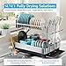 - [Larger Capacity & 2-Tier Design]: The Sunly Large 2-Tier Stainless Steel Dish Drying Rack measures 12.6”D x 22.48”W x 15.16”H, maximizing kitchen counter space for large families. (Before purchase, please ensure the height between the countertop and cabinet is greater than 20 inches to ensure a proper fit.)