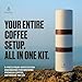 - All-in-One Adventure Coffee Kit - This 5-piece portable pour over coffee maker includes two 10oz double-walled insulated stainless steel travel mugs, a BPA-free splash-proof lid, a double-walled pour over coffee dripper, a nesting storage connector, and a reusable stainless steel mesh coffee filter—everything you need for premium coffee, wherever your adventure takes you.
