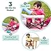 - Compact design easily folds to 5 x 15 inches; easy to clean with dishwasher safe tray and machine washable seat pad; includes a rear storage pocket for little essentials