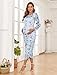 AISWI 2024 Women's Maternity Floral Print Mesh Dress Ruched Side Bodycon Long Sleeve Round Neck Maxi Pregnancy Dresses, Floral Light Blue, Medium