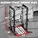 - Smooth Cable Crossover System: Benefit from the power rack cable crossover system, featuring a dual slide rail structure and stainless steel composite material. Composed of aluminum pulleys(1.0 use plastic pulleys) and high-quality rubber cable balls, this product provides a smooth and durable operation, ensuring a reliable workout for exercises such as low crossover, high crossover, mid crossover, chest press, mid row, bent-over row, lat pushdown, overhead triceps extension, and more.