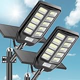 VOOJOY Solar Lights Outdoor Waterproof, 7000K Dusk to Dawn Solar Street Lights Outdoor Motion Sensor with Remote, LED Security Flood Light for Outside, Parking Lot, Yard, Garden, Garage, 2 Pack