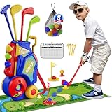 HYES Toddler Golf Set 2-4 Years, Kids Golf Club with 8 Balls, 4 Plastic Clubs, Putting Mat, Scoreboard, Storage Bag, Indoor Outdoor Game with Golf Cart Sport Toy Gift for Baby Boys Girls Age 3-5, Blue