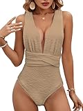 MOLYBELL Women's Plunge 0ne Piece Bathing Suit Deep V Neck Swimsuits Crisscross Wrap Tie Monokini High Waisted Tummy Control Swimwear (Grey, Large)