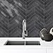 STICKGOO 10 Sheets Thicker Herringbone Peel and Stick Backsplash, 12.6”×9.7” Stick on Wall Tiles, Self Adhesive Tile Sticker for Kitchen Backsplash and Bathroom, Shiny Black with Dark Grey Grout