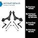 • Kit Includes:(2) Front Inner Tie Rods; (2) Front Lower Control Arms with Ball Joints; (2) Front Outer Tie Rods; (2) Front Sway Bar Links