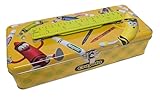 Metal Pencil Storage Box with Ruler Handle, Yellow Decorative School Supply Container, Secure Clasp Closure, Activity Storage Case