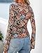 BTFBM Button Down Shirts for Women Fall Fashion 2025 V Neck Long Sleeve Blouse Ruched Mesh Fitted Floral Print Boho Tops(Floral Black Orange, Medium)