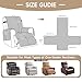 - Small Size: The small recliner chair covers fit a chair up to with sitting width of 23.6 inch, armrest width of 22 inch, back length of 51.2 inch. Please measure before purchasing, see measuring guide in photos. Perfect for regular recliner chair, Electric Recliner Chair and Lift Recliner Chair.