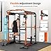 - 【15 Adjustable Heights & Versatile Accessories】Transform your power cage into a complete fitness hub with 15 adjustment holes accommodating Olympic lifts and cable crossovers. Our power racks for home gym compatibility shines with 12+ pro accessories including multi-function T-bars and 360° rotating landmine tube. Master compound lifts and isolation moves with commercial-grade dip bars and LAT pulldown attachments.