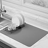Dish Drying Mat for Kitchen Counter Super Absorbent Drainer Mats with Non-slip Rubber Backed Hide Stain Heat Resistant Easy to Clean Dish Rack Mat (Gray, S-14"x11")