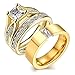 wedding ring set Two Rings His Hers Couples Rings Women's 10k Yellow Gold Filled White CZ Wedding Engagement Ring Bridal Sets & Men's Stainless Steel Wedding Band